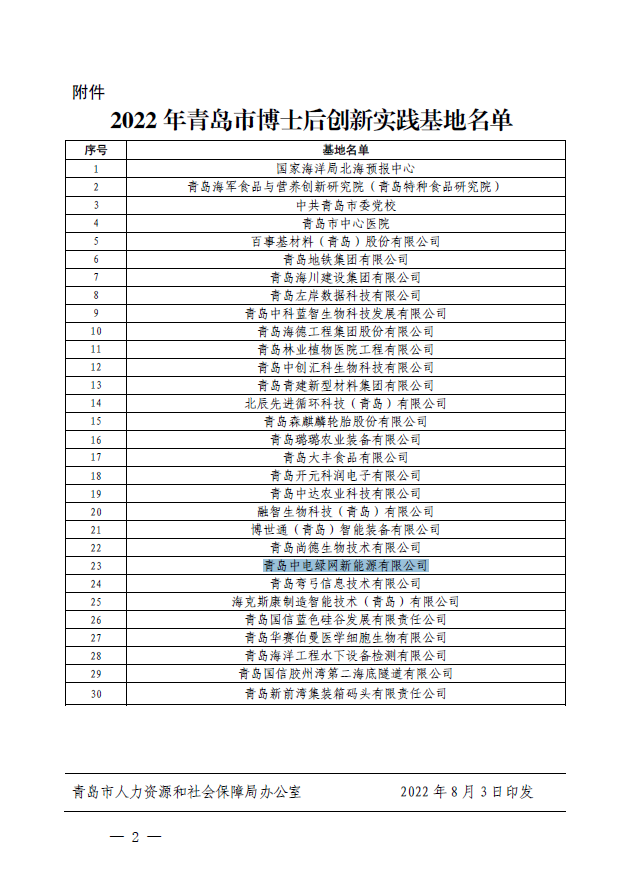 青島中電綠網(wǎng)新能源有公司榮獲“青島市博士后創(chuàng)新實踐基地”