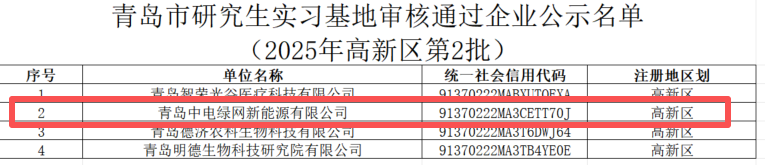 近日,青島國家高新技術產業開發區黨群工作部正式發布《關于青島市高新區研究生實習基地審核通過名單公示(2025年高新區第2批)》。中電綠網憑借在綠色能源與智能電網領域突出的科研實力與完善的人才培養體系,成功獲批“研究生實習基地”資質。